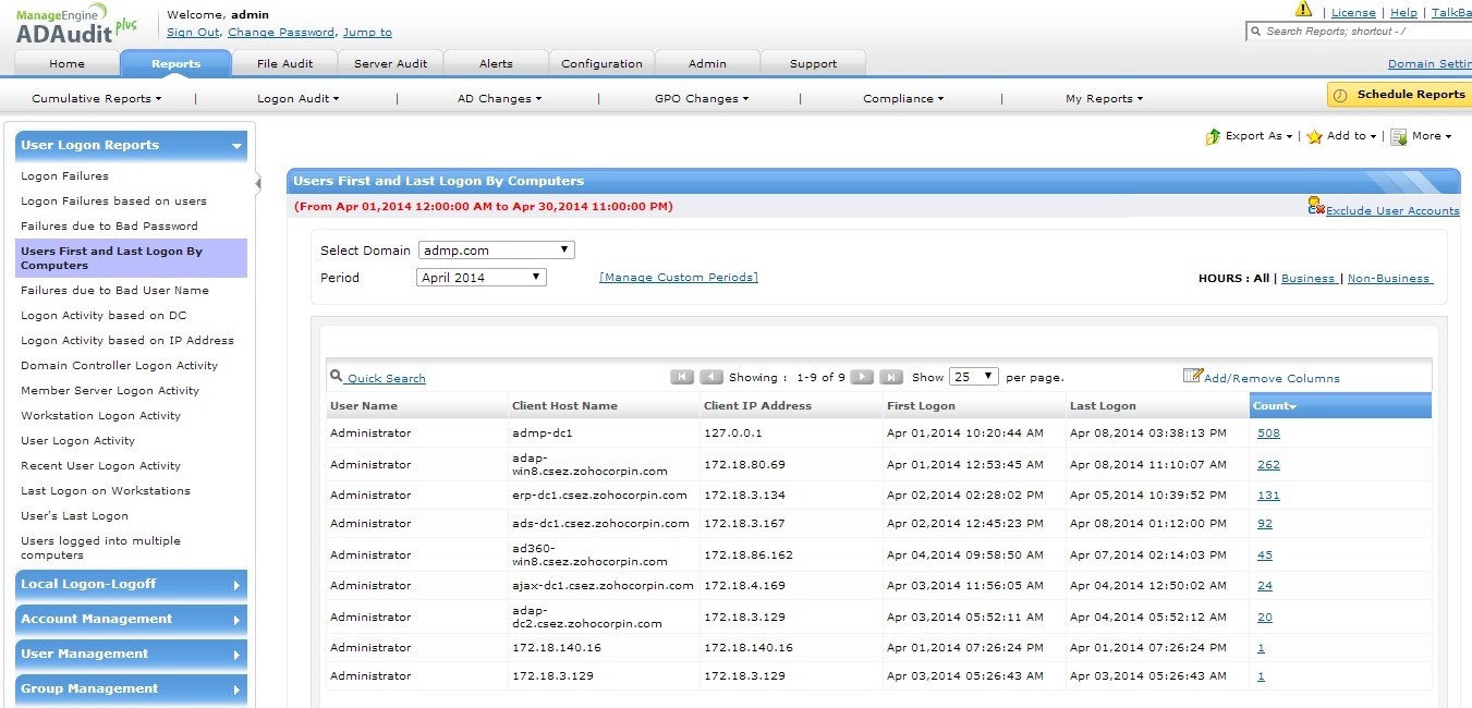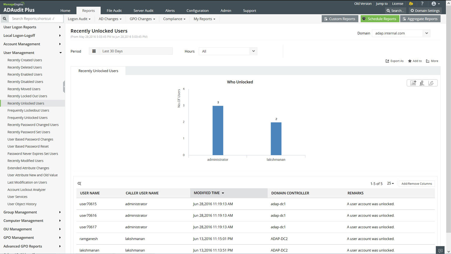 持续监控所需的任何Active Directory报表可添加到“我的报表”,就像将报表加入书签一样以便快速查找。 |