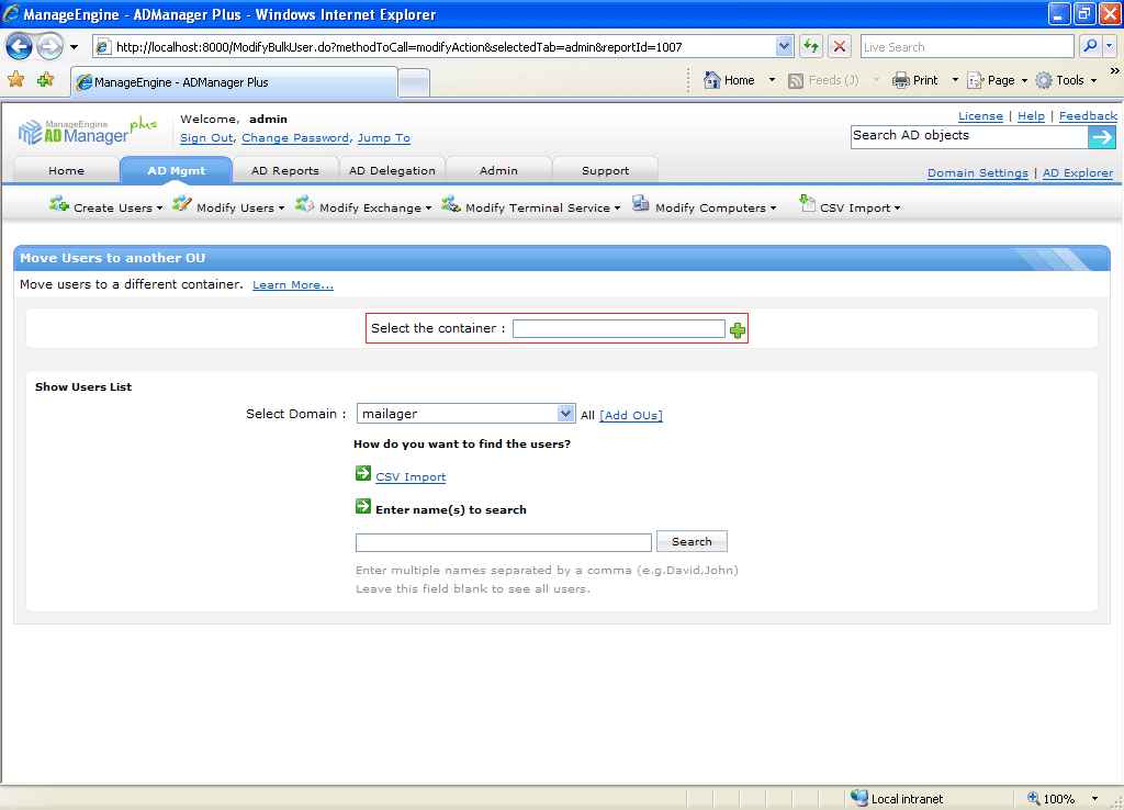 Step 1. Select the Domain and OU to which the users have to be moved