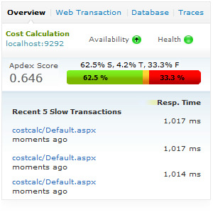 实时监视关键性能参数 通过对端到端的.NET web事务处理跟踪,可以透视从URL到SQL语句全程的性能数据。 全天候的监视.NET web 事务处理的性能,在问题影响到最终用户之前解决。