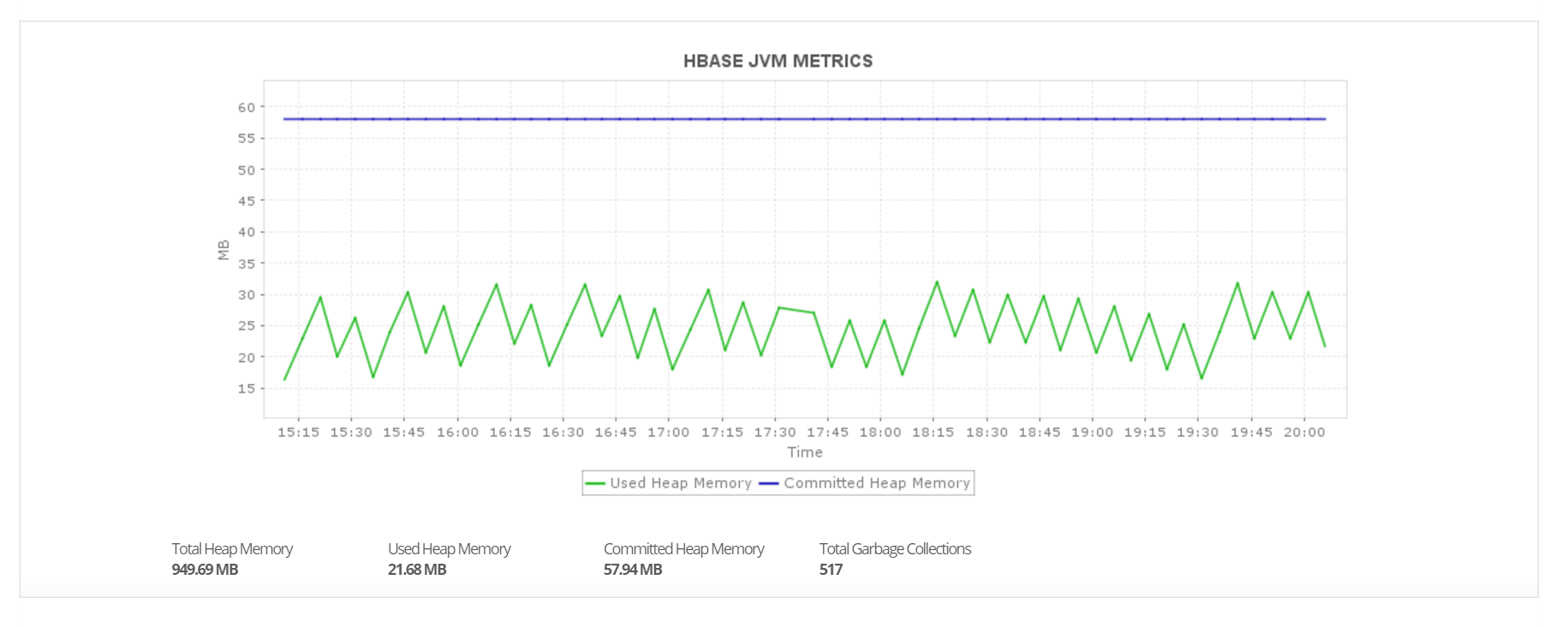 跟踪内存使用情况详细信息,例如可用内存量、空闲交换空间大小及总大小、占用的虚拟内存大小,等等。跟踪 JVM 指标,以便把服务器性能与底层 JVM 内部信息关联。可以使用此信息调整 HBase 集群设置。