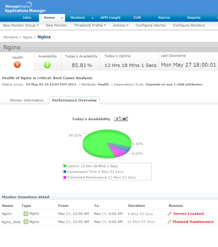 Nginx is a popular open source high-performance web server for larger web setups. It is known for its rich feature set, simple configuration, and low resource consumption. Applications Manager's Nginx monitoring feature helps optimize Nginx server performance and provides comprehensive management reports.