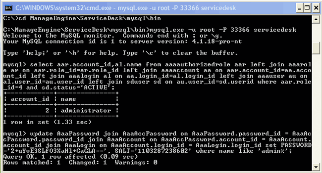 On executing the query, restart ManageEngine ServiceDesk Plus service.