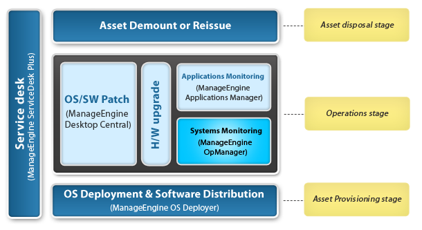 参阅下图,了解OpManager在系统管理范围中所处的位置。