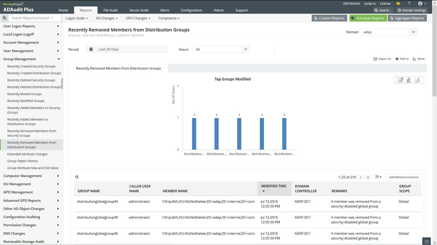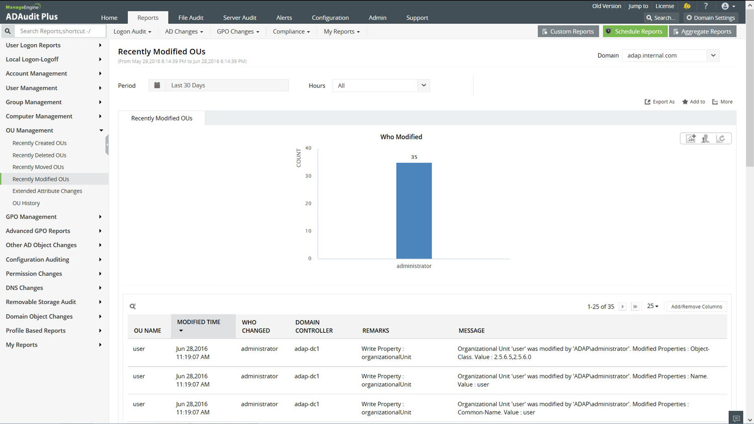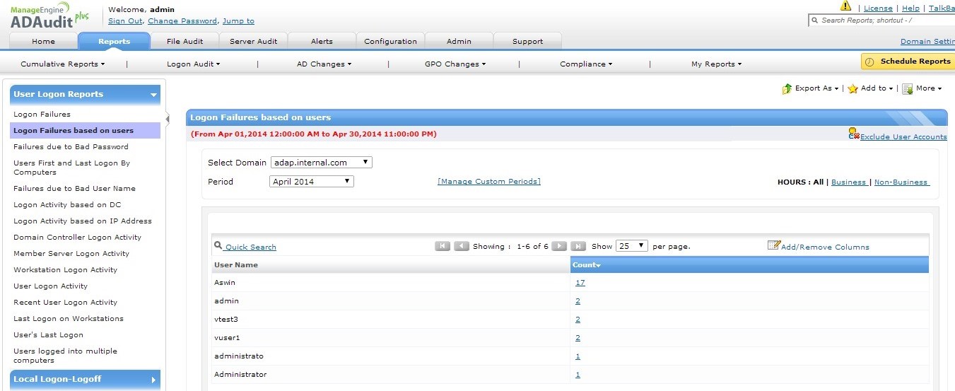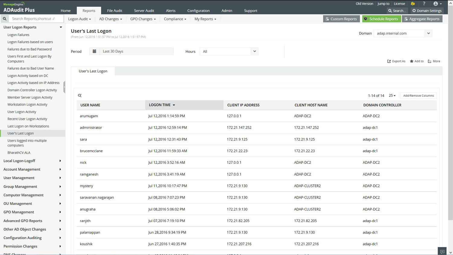 持续监控所需的任何Active Directory报表可添加到“我的报表”,就像将报表加入书签一样以便快速查找。 |