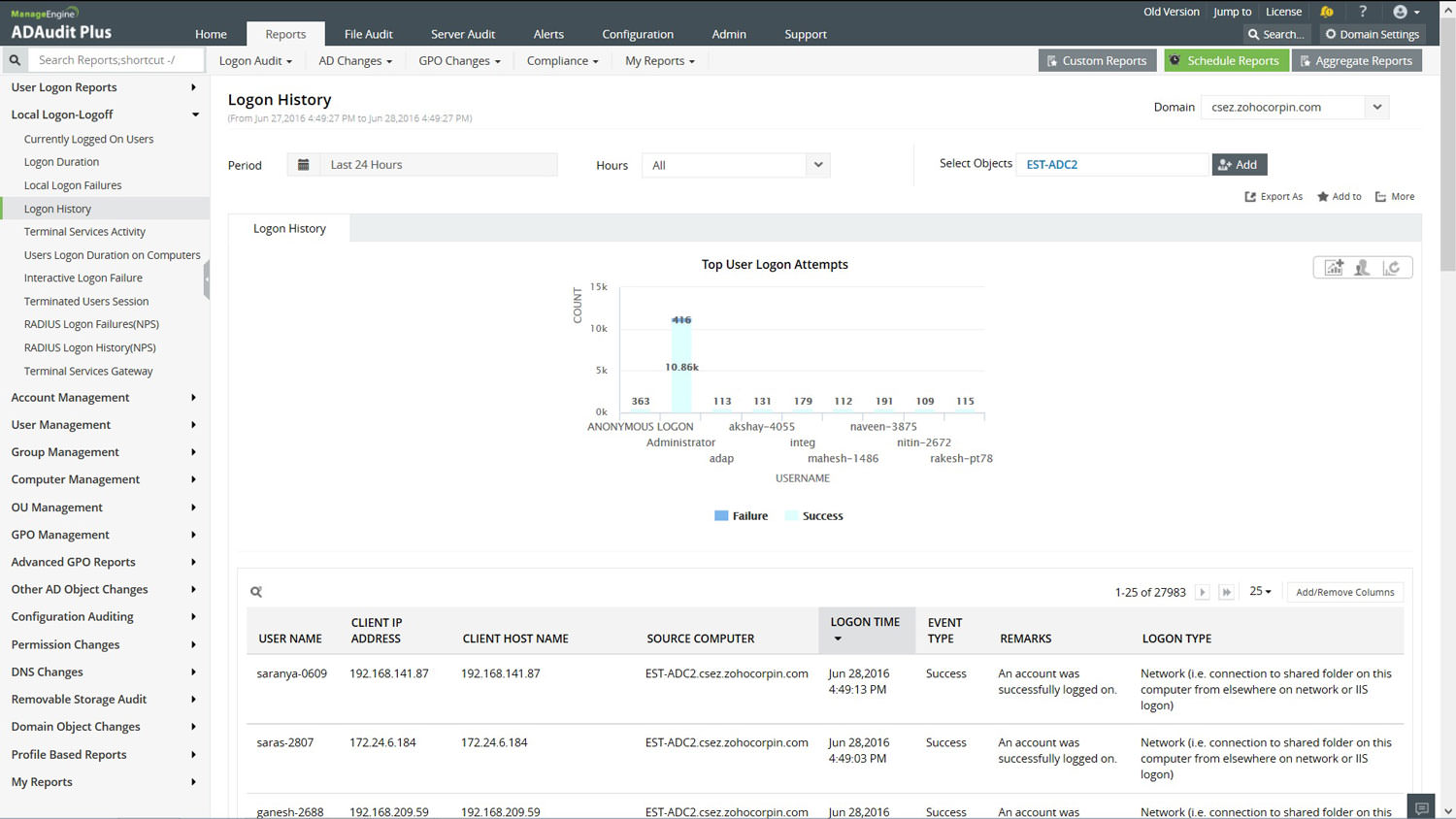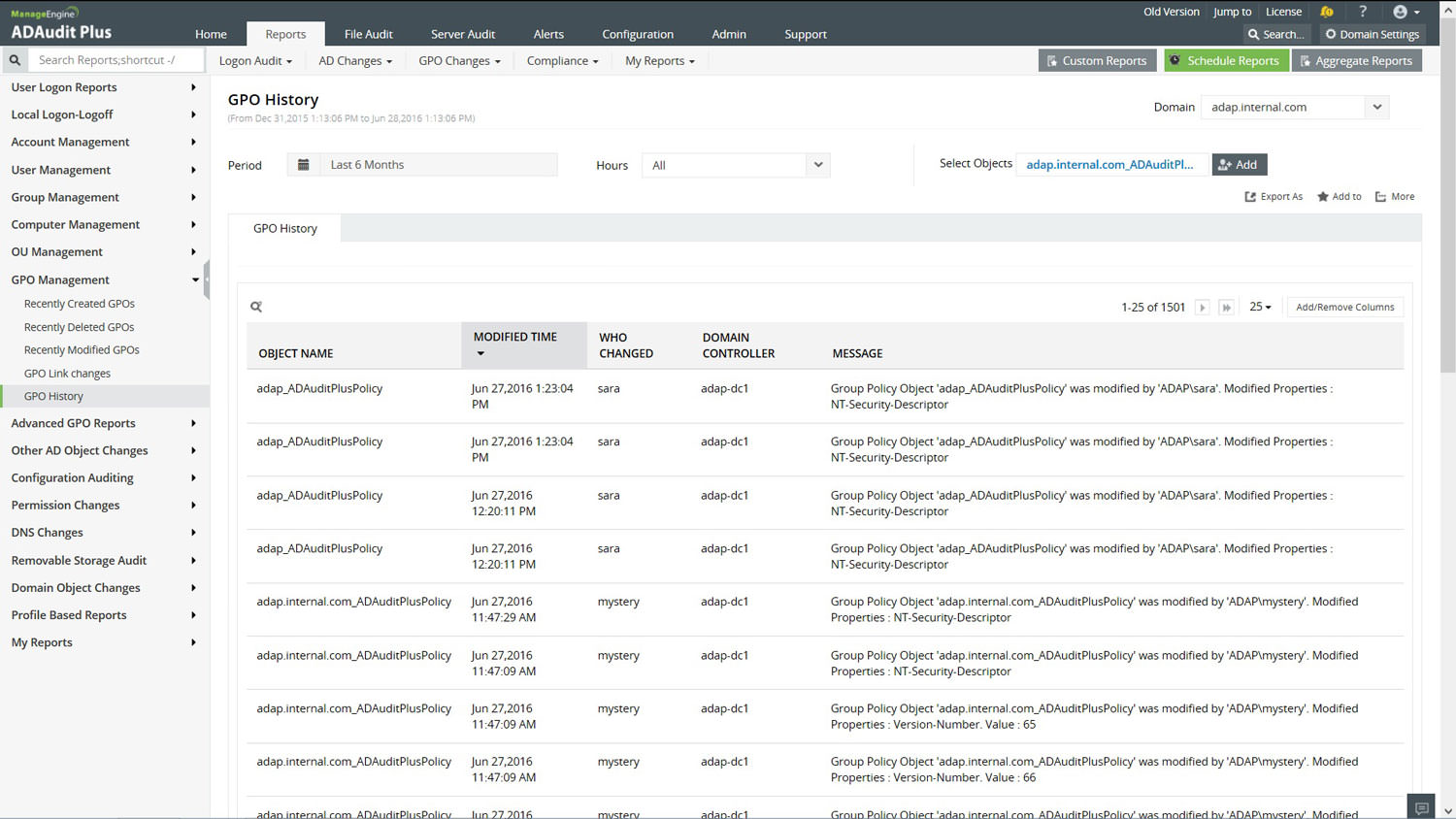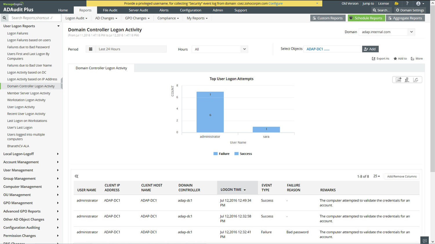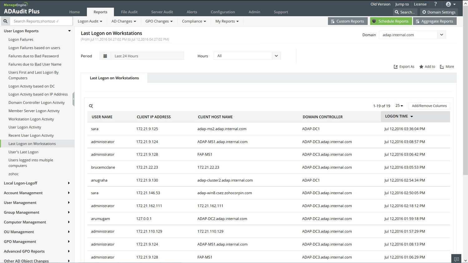 持续监控所需的任何Active Directory报表可添加到“我的报表”,就像将报表加入书签一样以便快速查找。 |