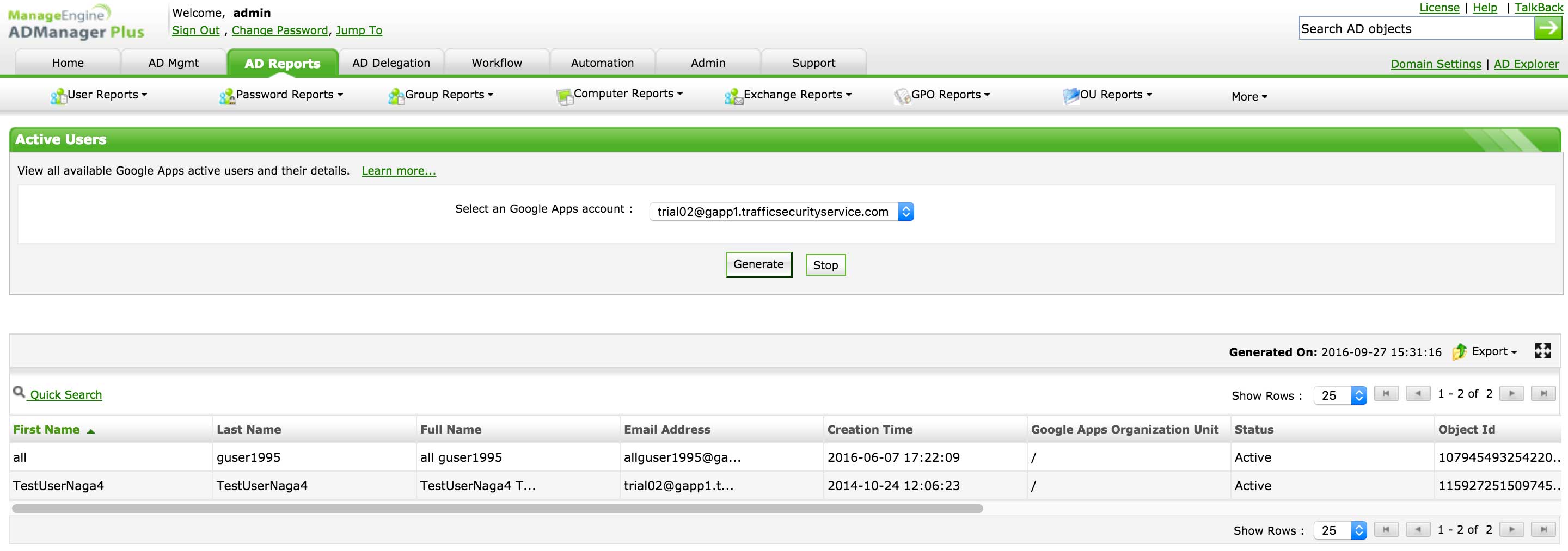 Besides generating reports on your G Suite environment, this web-based solution helps you provision user accounts in G Suite.