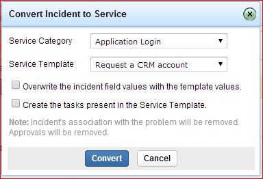 如果需要在转为服务请求之后,同时应用服务模板中定义的任务,则选中创建服务模板中定义的任务的选项。