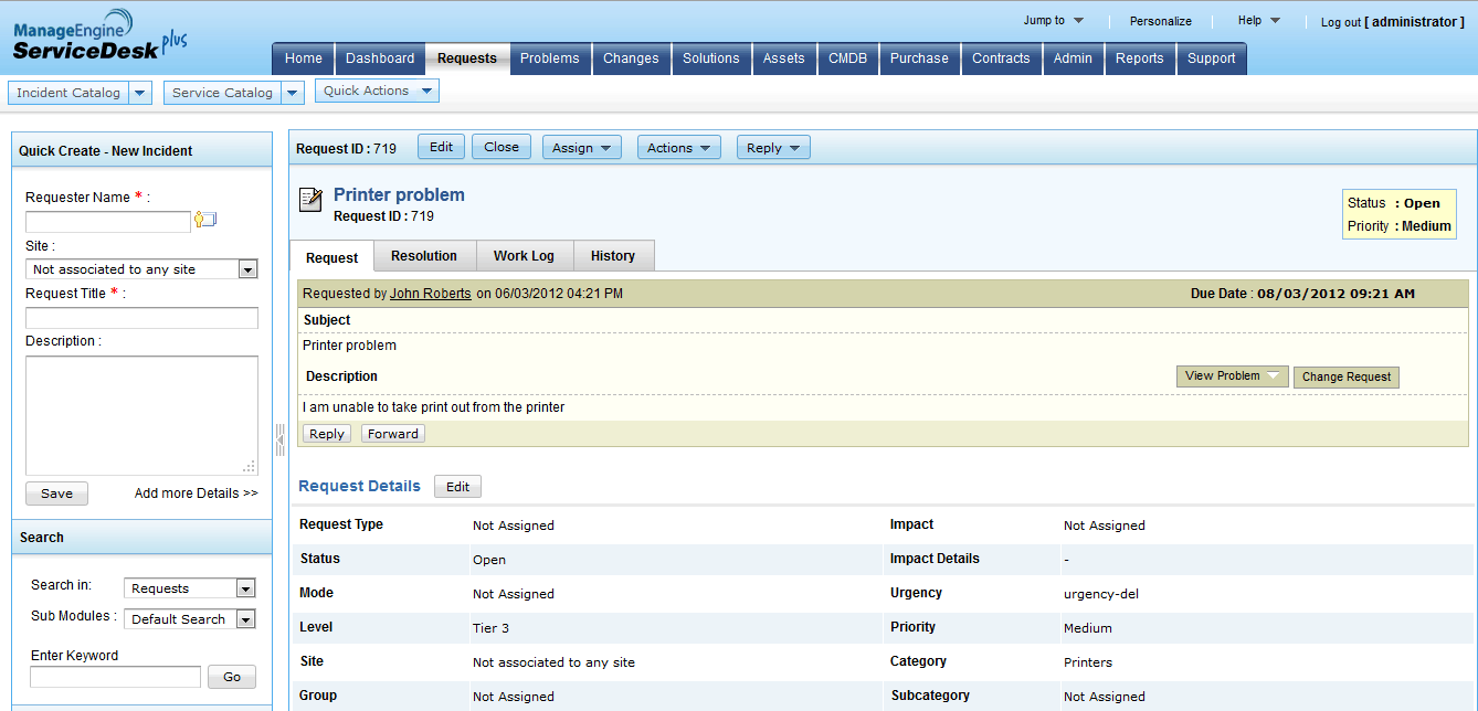 ServiceDesk Plus also helps in identifying the Asset-User relationship at the time of the IT service failure and defining the problem priority