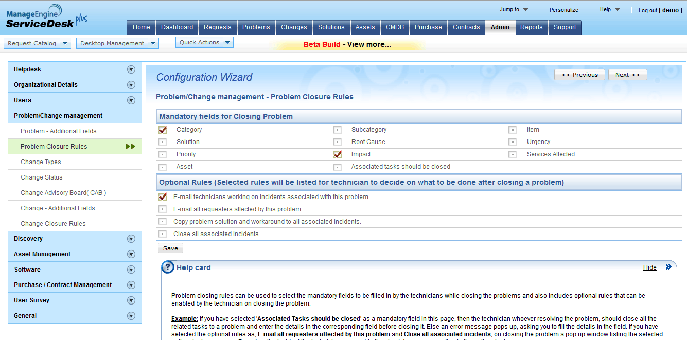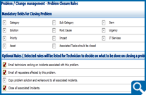 Problem closure is very critical as closure confirms that all apects of the user problems are addressed to the user satisfaction. ServiceDesk Plus helps to ensure that all the associated incidents are closed with a proper fix or resolution to the failure reported using the Problem closure rules.