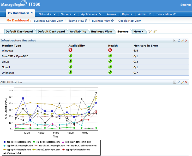 ManageEngine IT360 an Integrated IT Management solution to monitor network devices, applications, servers, storage and bandwidth from a single console. IT360 also comes with an integrated ITIL ready service management module with an inbuilt CMDB.ManageEngine IT360 brings two main fields of IT management; IT operations and Service management onto a unified console/dashboard, some of the features of IT360 includes: