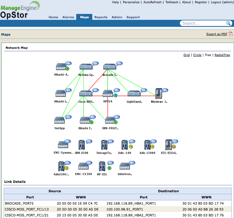 OpStor is a multi-vendor storage area networks SAN and network attached storage NAS monitoring tool for storage devices like Storage Arrays, Fabric Switches, Tape Libraries, Host servers and Host Bus Adapters cards.