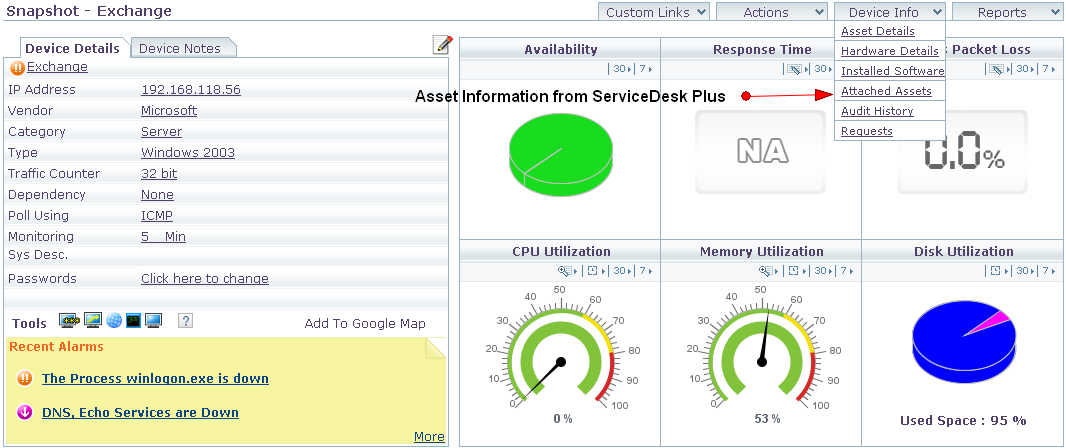 - 通过对比Service Desk plus 和 OpManager的报表,了解经常出现问题的设备和升级请求