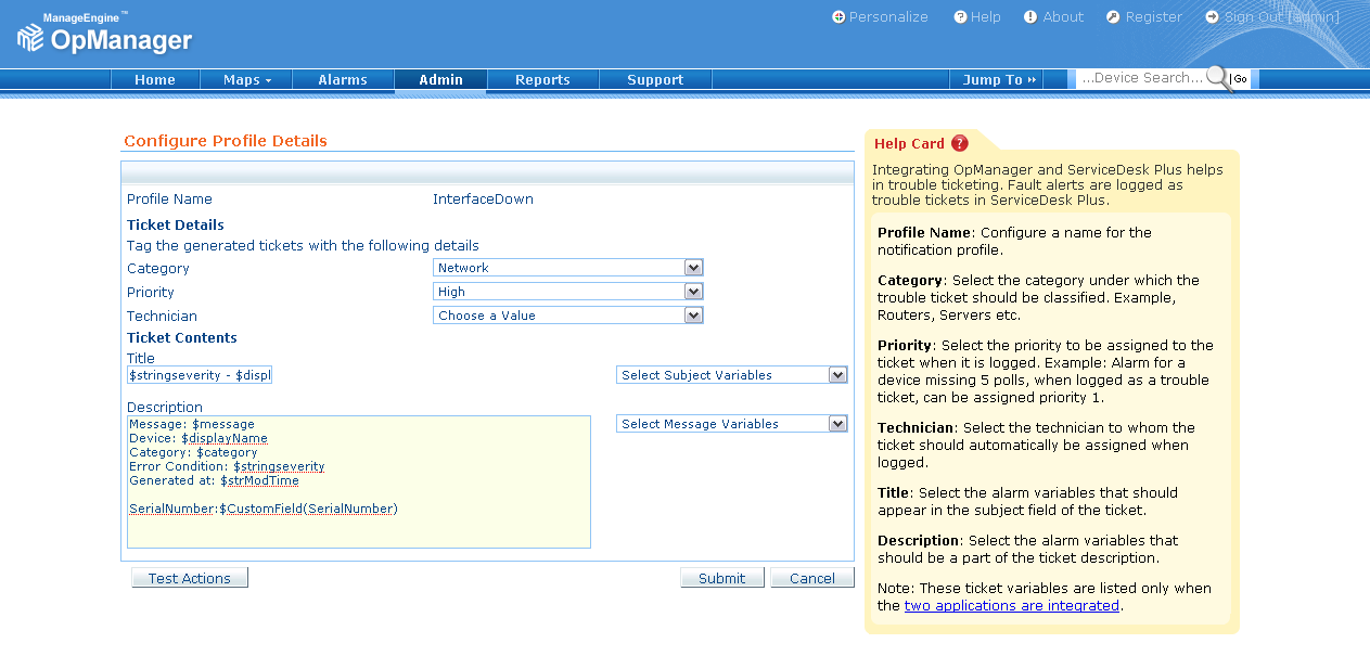 OpManager与ServiceDesk Plus集成