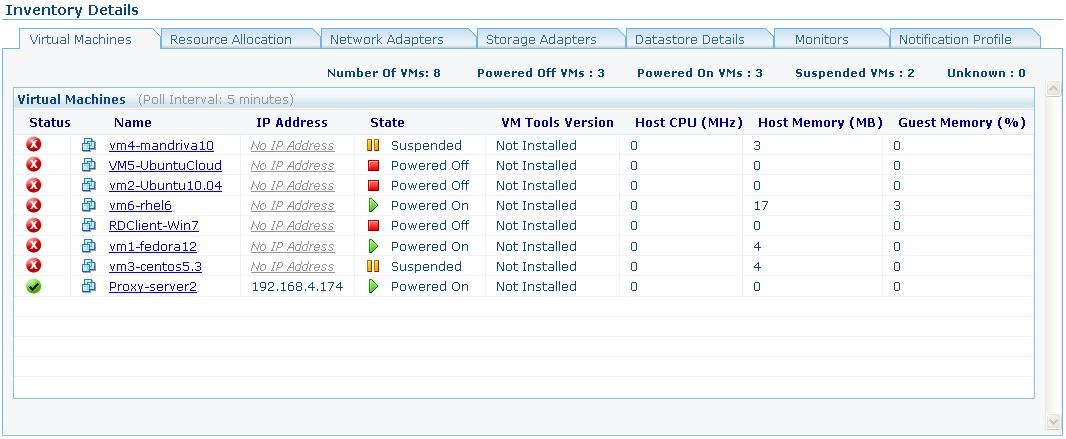 在虚拟架构维护中,最大的挑战是避免计划的外和僵尸机器,要达到这种目的,您只能一边一边的检查主机的虚拟机清单以及指派给每台虚拟机的资源明细。但是现在,您可以通过OpManager自动的去检查资源清单,这样,即便是虚拟机在虚拟机集群中的迁移,也可以被OpManager轻松捕获。