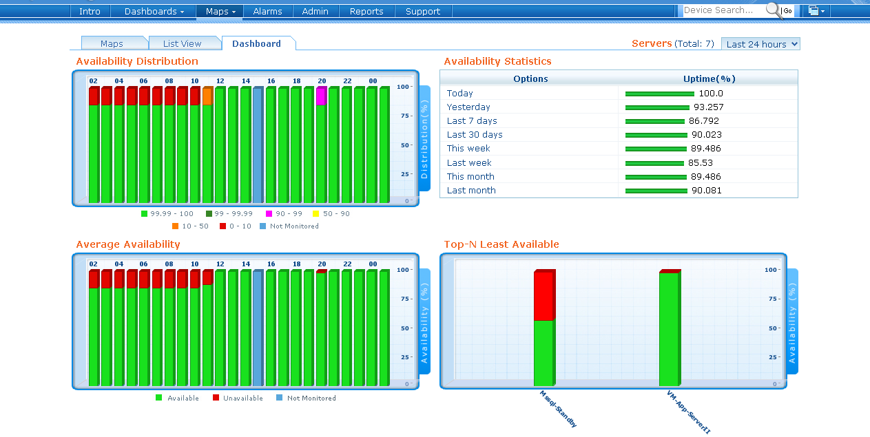 通过OpManager内建的100+网络性能报表 ,如服务器可用性、资源利用率、故障事件等提供的数据,您可以为您的下次IT容量设置添加规划。此外,您还可以创建您自己的自定义报表,如某天的可用性报表、数据中心中所有服务器的响应时间,也可以设置将这些报表定期发送到您的邮箱。
