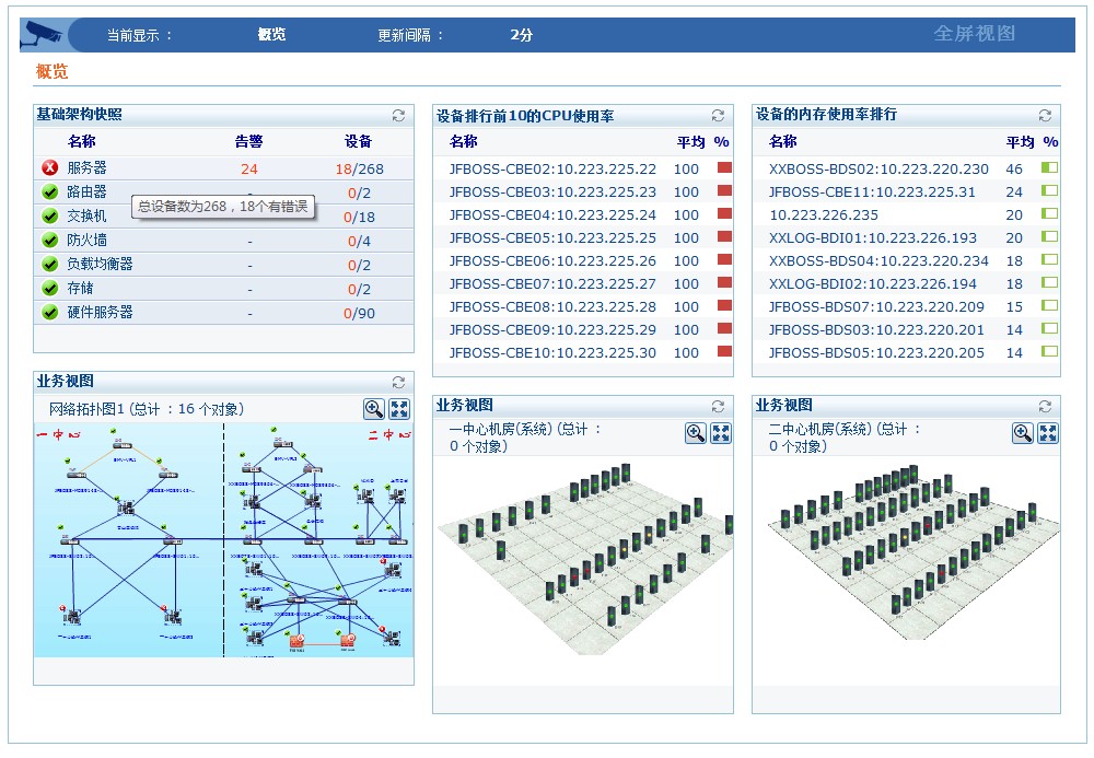 借助直观的网络拓扑图和机房视图,可以清晰地了解网络结构、机房设施以及业务应用系统,及时地发现和定位问题,极大地降低了网络运维的难度。