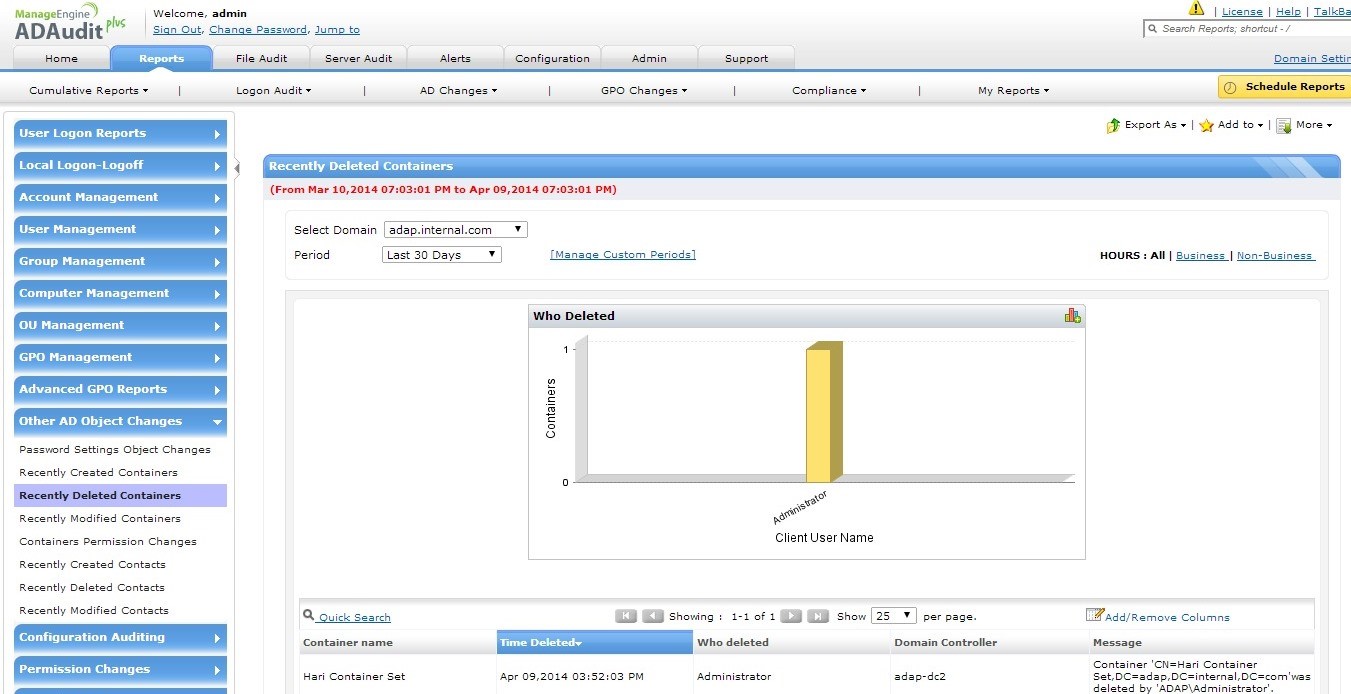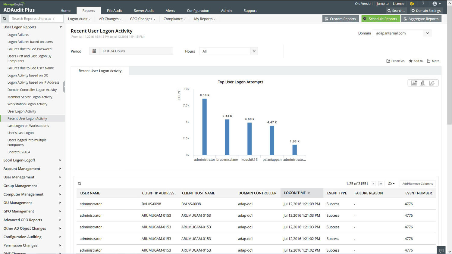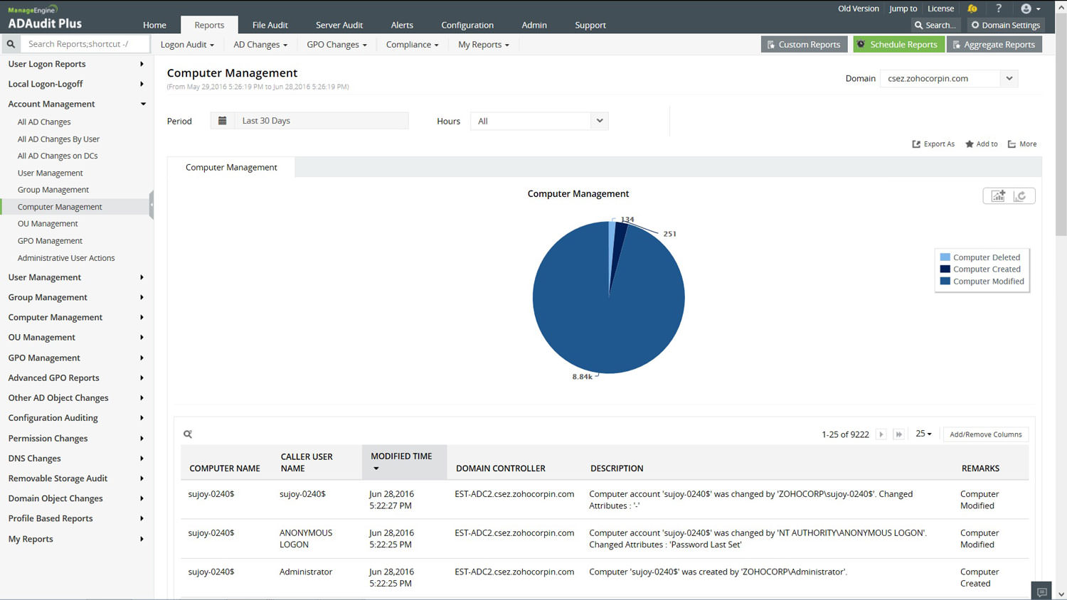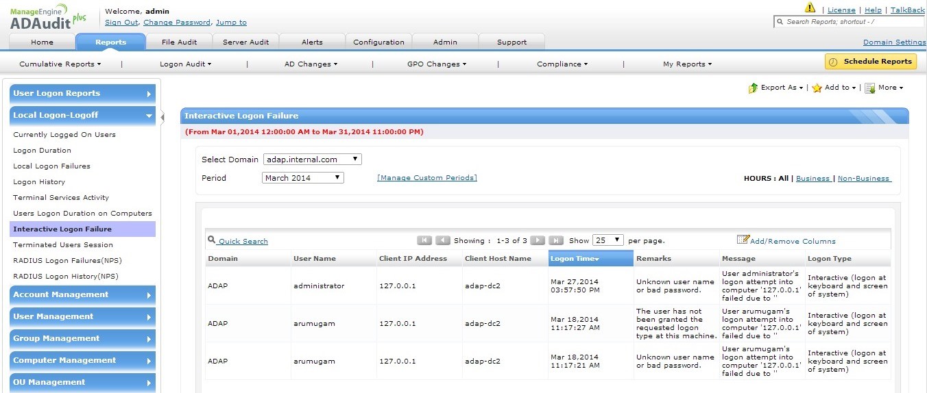 持续监控所需的任何Active Directory报表可添加到“我的报表”,就像将报表加入书签一样以便快速查找。 |
