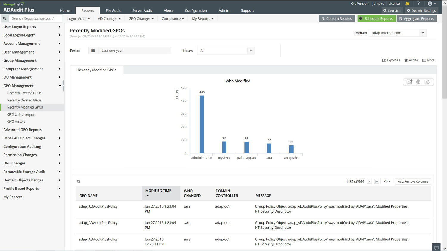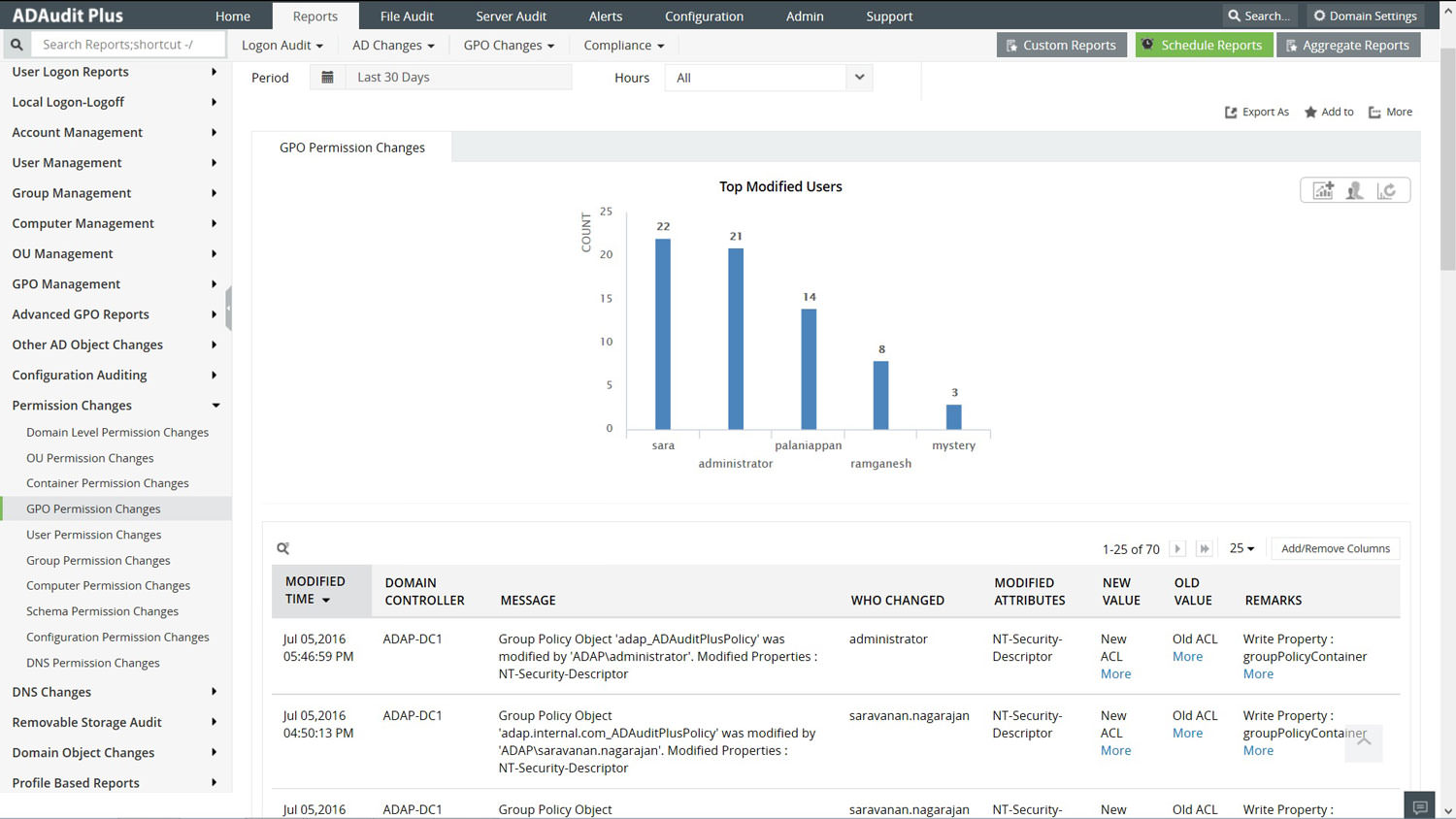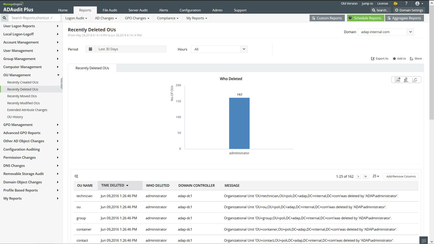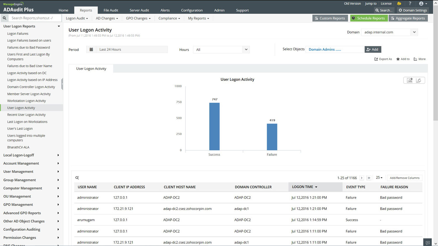 持续监控所需的任何Active Directory报表可添加到“我的报表”,就像将报表加入书签一样以便快速查找。 |