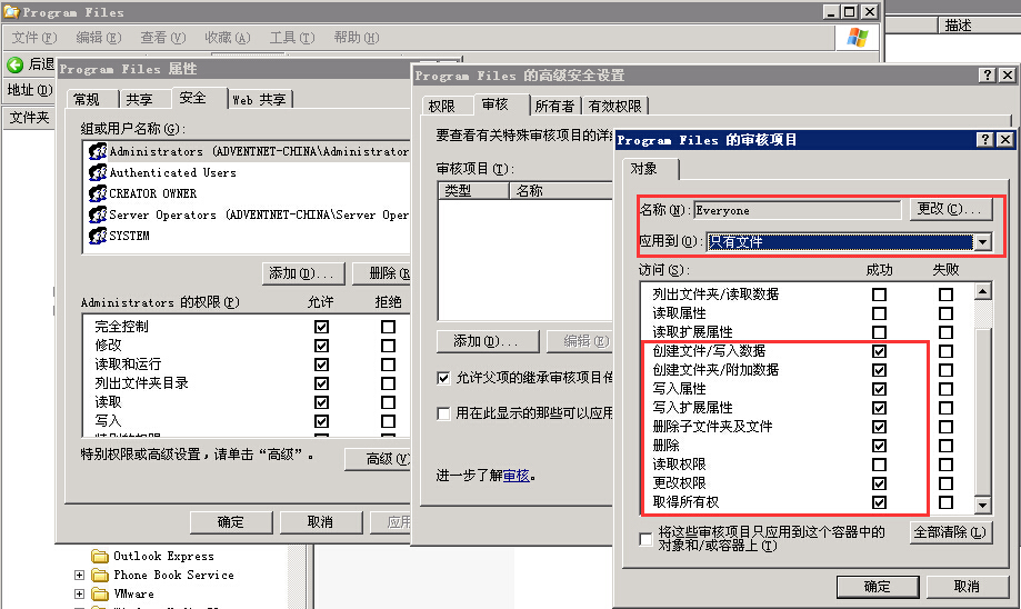 如需对文件和目录进行审计,必须对其应用相应的审核策略和SACL。