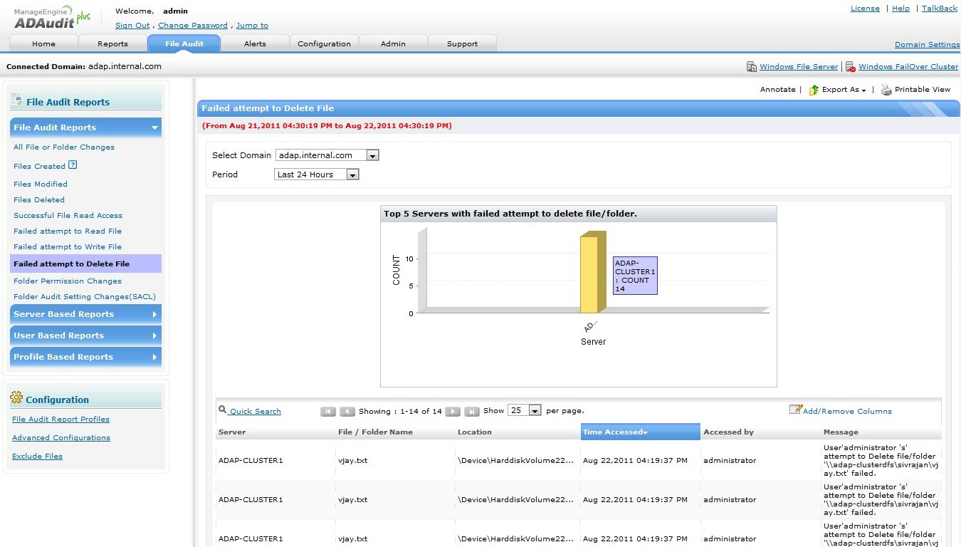 实现Windows文件服务器故障转移集群审核、监控、报表,符合要求;ADAudit Plus使用简单、基于筛选器的报表和即时电子邮件告警,让您可以自信地保护您的服务器网络环境!
