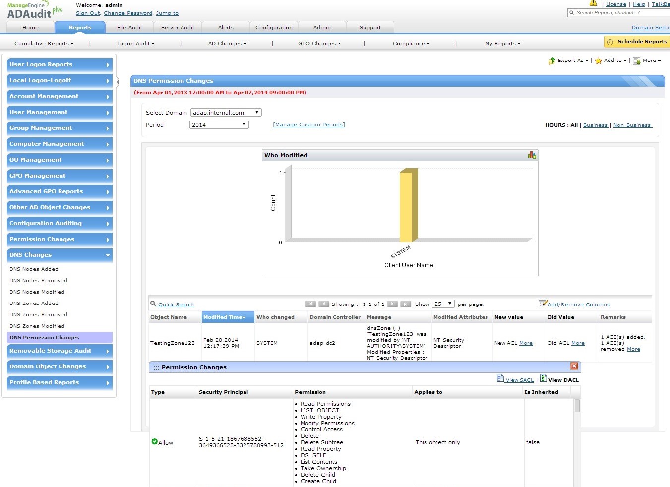 去除复杂性,无需再解释数千个复杂的安全描述符字符串并分析/报表它们。ADAudit Plus为您提供200多个简单、容易看懂的报表和即时电子邮件告警,包含每个事件的详细信息。例如:修改状态(已添加/移除权限)。使Windows Active Directory和Windows文件服务器更改审核自动化,通过数据治理、信息安全以及将报表导出为XLS、HTML、PDF和CSV格式获得完整的审核记录,以用于取证和满足各种合规要求。