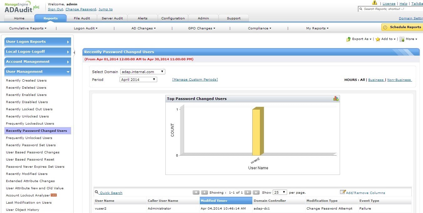 导出报表和满足合规要求– 使用XLS、CSV、PDF和HTML格式的审核报表满足PCI、SOX、GLBA、FISMA、HIPAA合规要求。