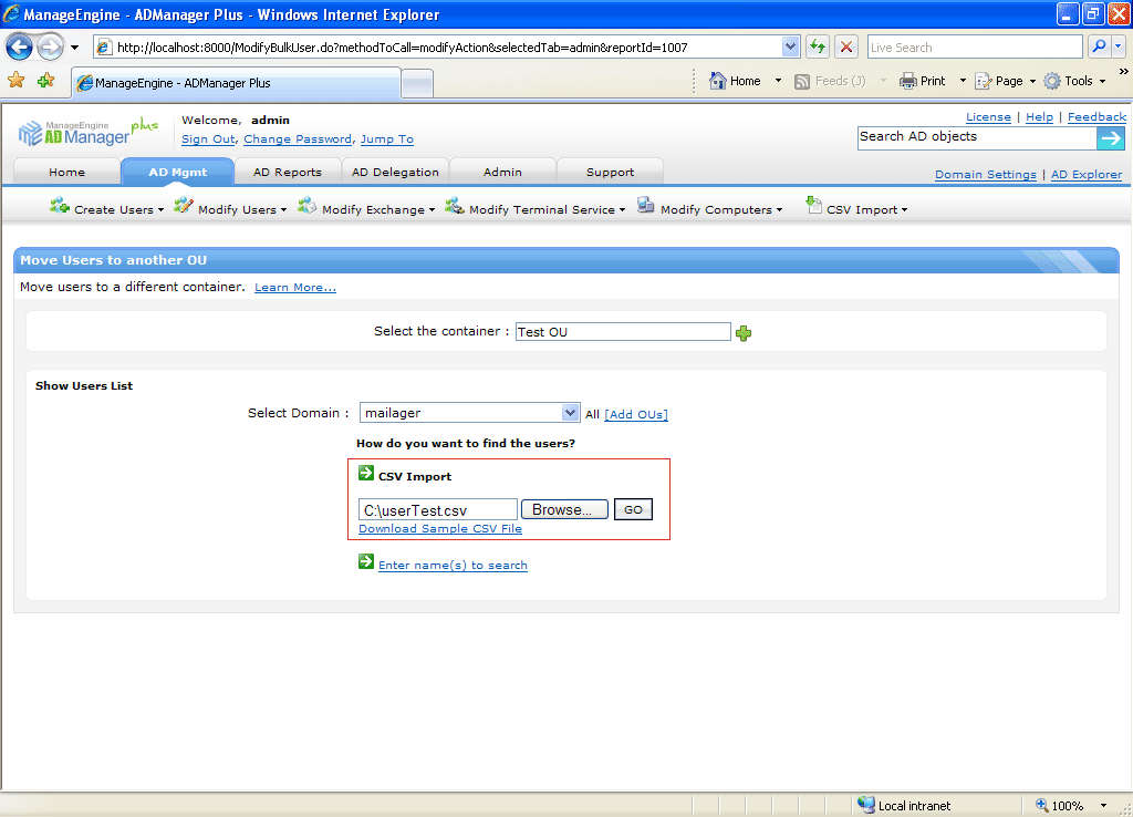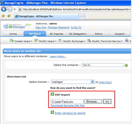 Step 2. Import the list of users to be moved from CSV file.