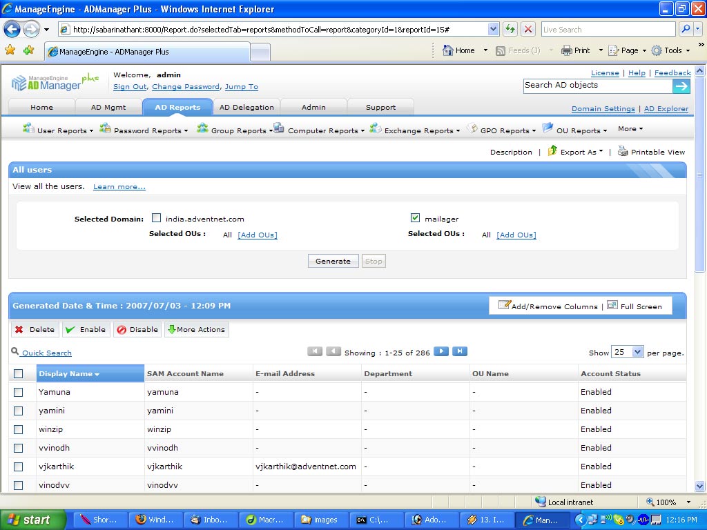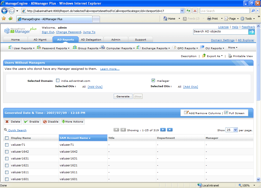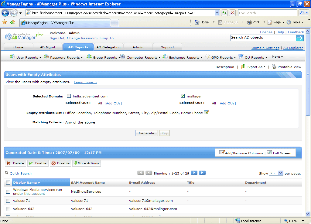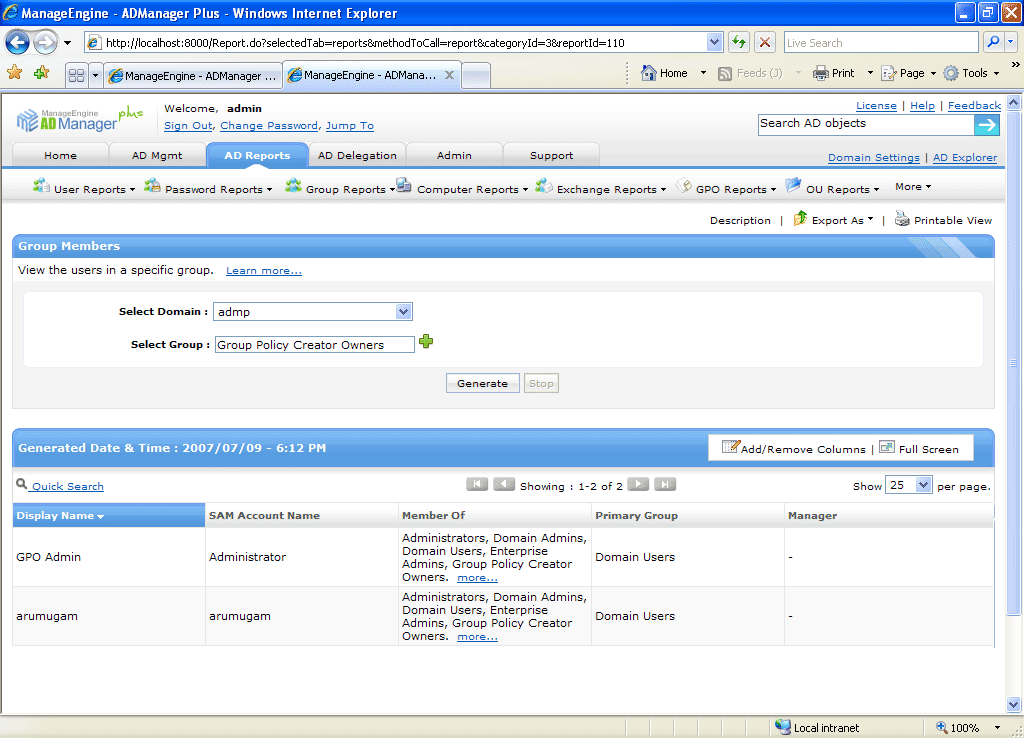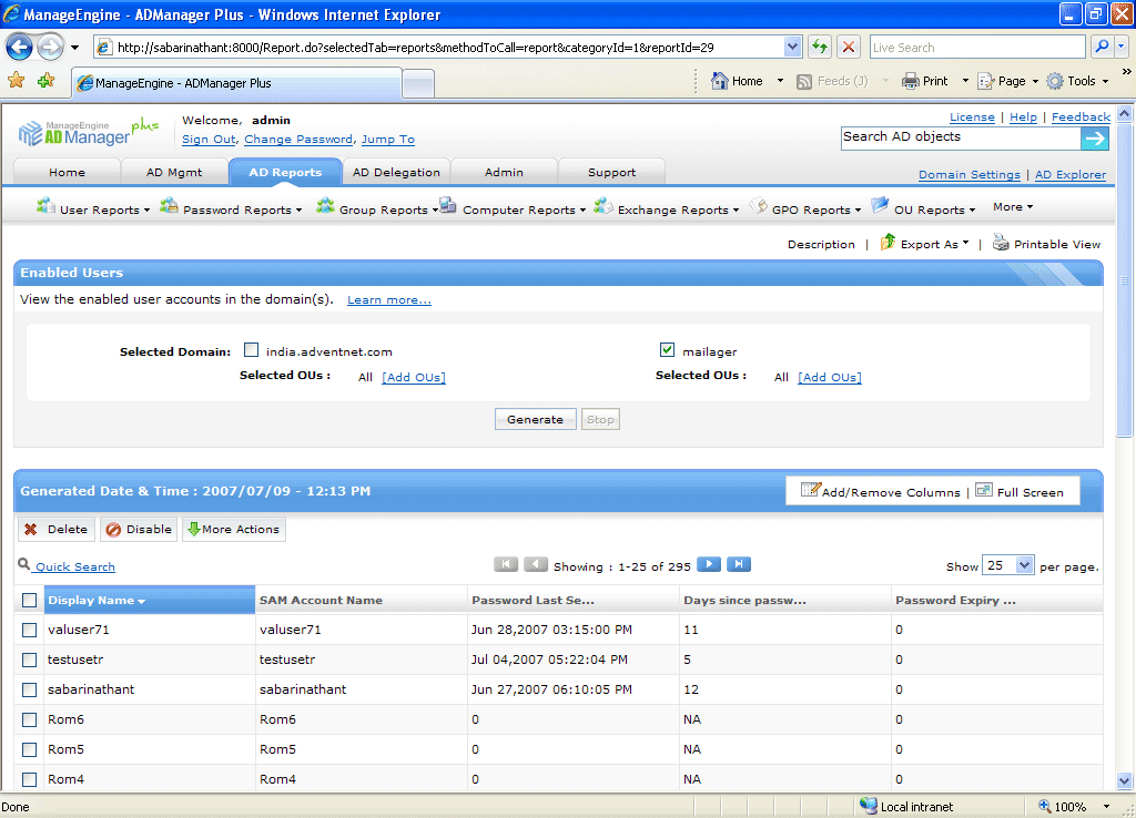 ADManager Plus提供超过150个预定义的报表,让您只需点击几下即可查看重要信息。您甚至可以配置报表自动生成并发送到特定电子邮件地址。此外,您还可利用其导出选项将所需的报表导出为所选的格式:PDF、excel、CSV、CSVDE或HTML。ADManager Plus的报表是可付诸实施的,也就是说,您可以直接从这些报表内执行所需的管理操作。例如,在查看AD环境中的不活跃用户时,您可以选择禁用它们。这些报表还帮助您满足甚至超出SOX、HIPAA等的合规要求。
