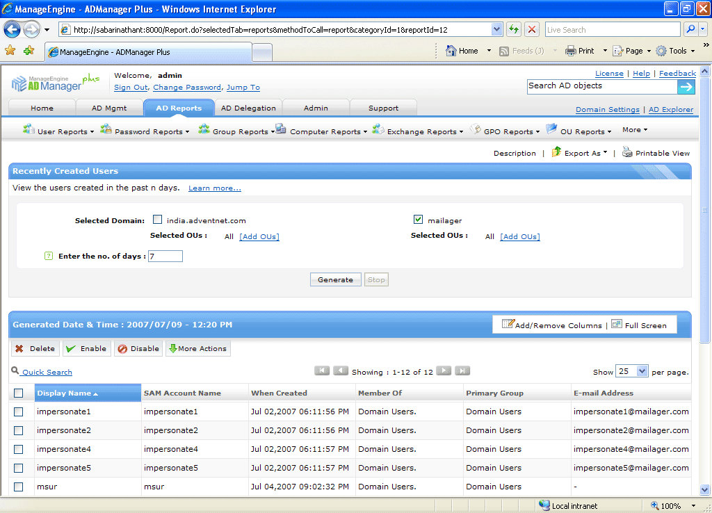 利用ADManager Plus's AD管理功能使每天的Active Directory管理任务变得简单轻松。只需点击几次就能创建、修改和删除用户!