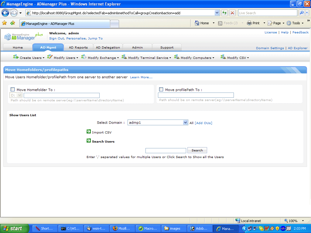 Modify Logon Script: You can modify or set logon script for bulk users by importing them from a CSV file.