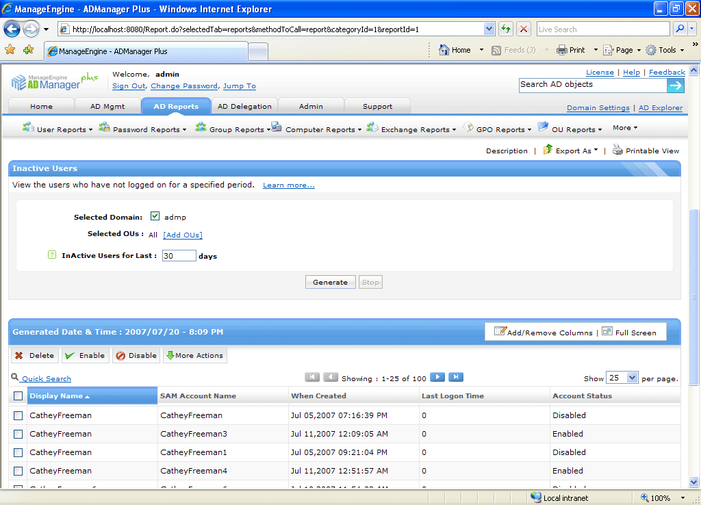使用ADManager Plus的以下报表有助于检测和删除Active Directory中的休眠帐户:
