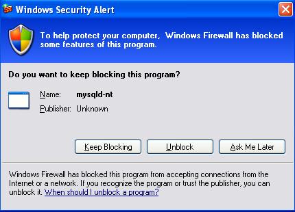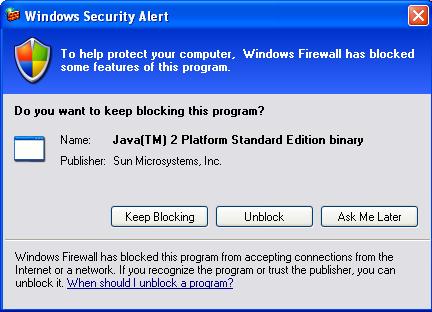当ADManager Plus运行的机器上有防火墙,Windows XP或Windows 2003可能会提示是否阻止或不阻止以下程序的运行。