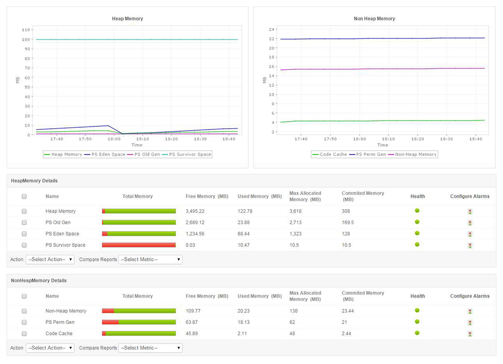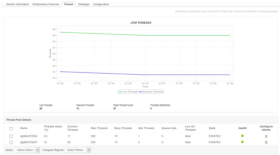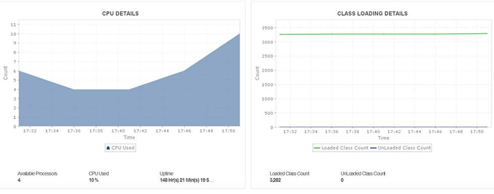 通过测量 CPU 使用率等重要参数,以及已用/未用内存量相关的 JVM 统计信息,以最优方式分配资源。通过监控垃圾回收效率、连接池使用率和会话利用率详细信息,跟踪应用程序性能。