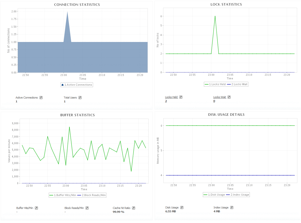 Applications Manager可监控PostgreSQL数据库服务器的可用性和性能,对数据库的任何异常及时产生告警,通知管理员,便于采取有效措施,防止影响企业正常业务。