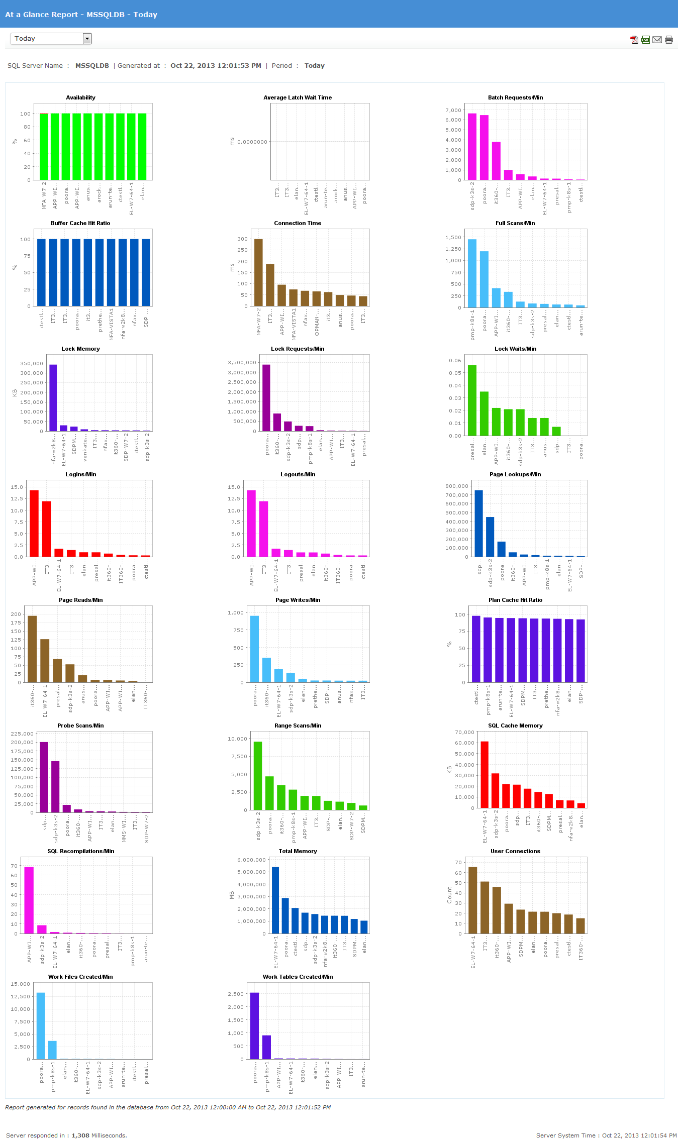 一览报表帮助数据库管理员了解关键属性的状态,例如响应时间、连接时间、可用性等等。