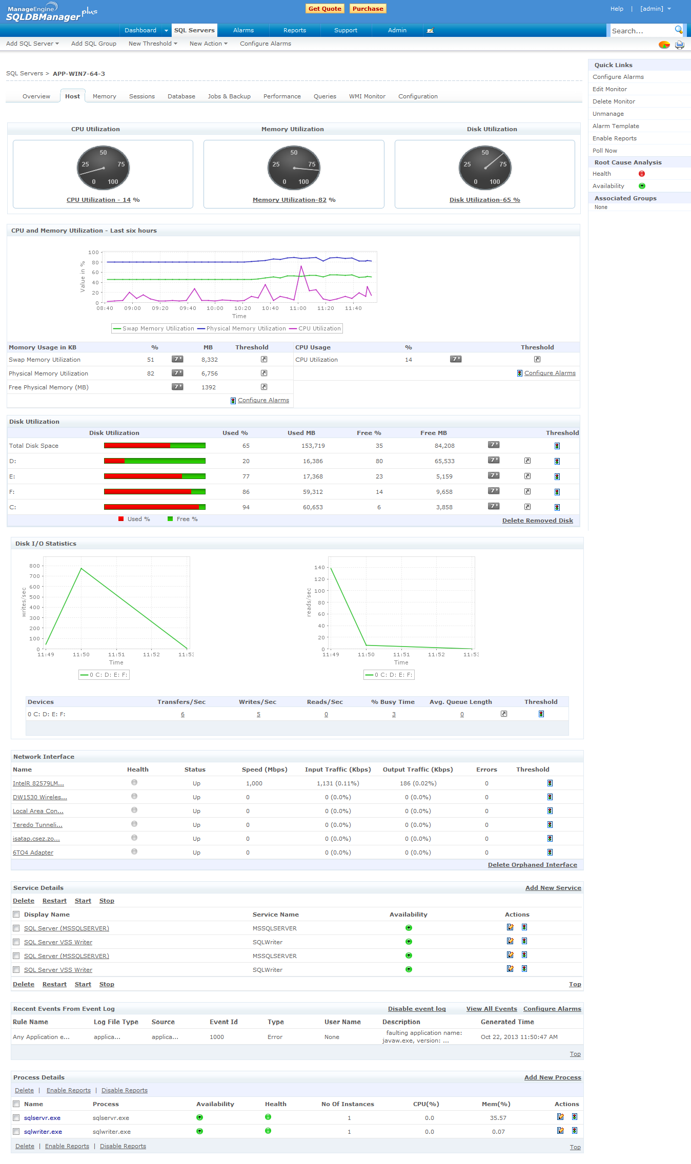 ManageEngine SQLDBManager Plus监视SQL Server所在主机的关键性能参数:
