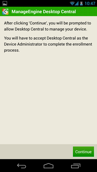 当设备登记完成之后,用户会接收到一个应用目录,他们可以从这里安装从Desktop Central分发的应用。当新的用户登记了设备之后,管理员也会获取到通知。一旦特定的配置文件或应用分发到了添加的设备所在的组,那么设备将会自动接收所有施加给它的配置和应用。
