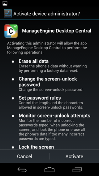 自助登记设备(BYOD)已成为移动管理的一个重要组成部分。现代企业已经将自助服务作为业务战略的一部分,以促进工作和生产效率。它允许公司雇员可以随时随地的访问公司的数据,也就意味着,在增加工作效率的同时也需要承担更多的风险。这是自助服务面临的普遍问题,因此,每个企业都希望找到一个既可以监视设备、分发应用又能够保证公司数据安全的移动设备管理方案。 Desktop Central可以轻松管理雇员的私有设备和公司的设备。您可以为管理的雇员设备创建不同的组,然后在此组上施加策略和限制,保护公司数据。