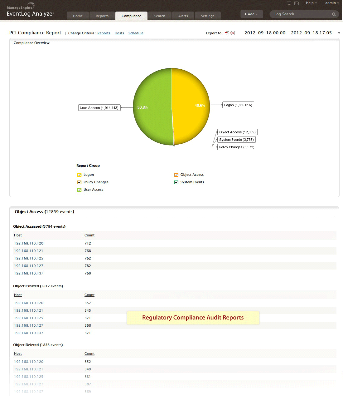 - • 分析事件日志数据并针对监控合规审核生成报表