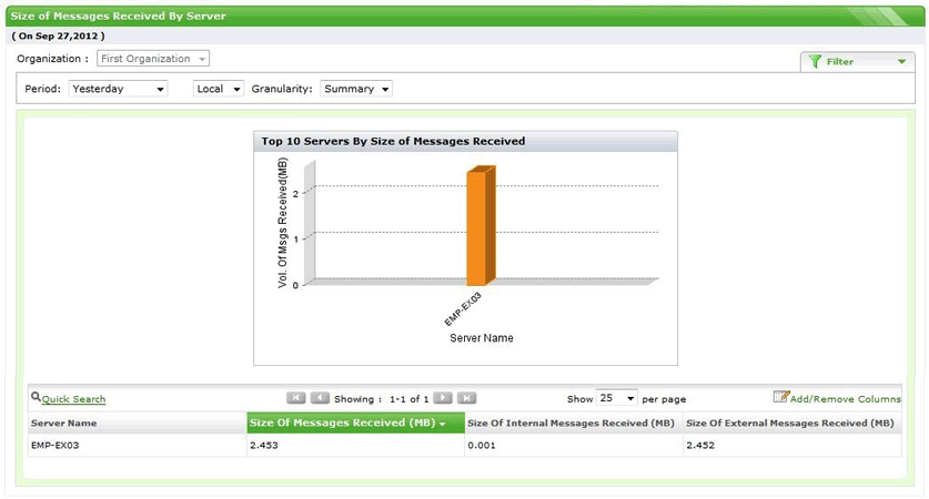 Size of Messages Received By Server Report - Exchange Reporter Plus |