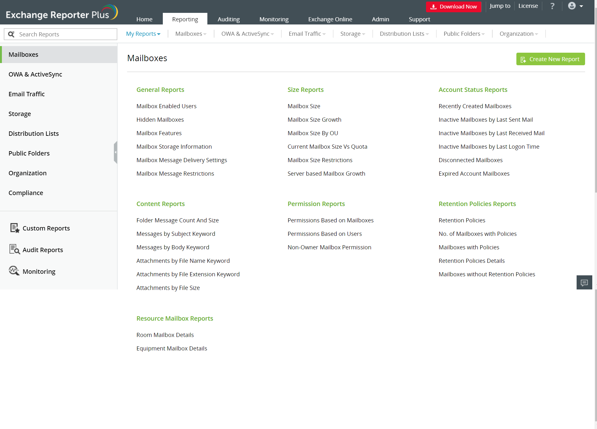 使用Exchange Reporter Plus的邮箱报表,您可以: