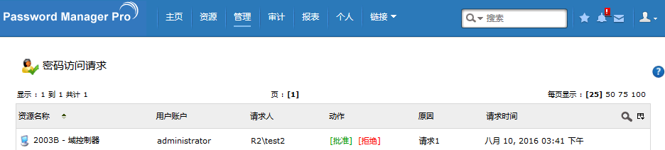 - 在管理员批准密码请求后,请求状态会立即变为"未使用",表示密码还未签出。一旦用户查看了密码,则状态将变为"正在使用"。