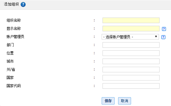 - 显示名:用于识别正在添加的组织机构的名称。这里只允许无空格的字母和数字,并且是一个单独的单词。在这里输入的名称将会出现在PMP机构的名称。这里只允许无空格的字母和数字,并且是一个单独的单词。在这里输入的名称将会出现在PMP