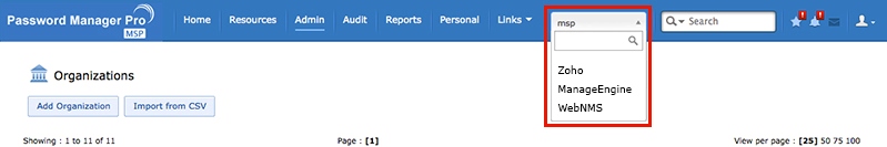 ManageEngine Password Manager Pro已经支持MSP版本了,这是考虑到管理服务提供商的需求特别设计的。如果您是一个(管理服务提供商),希望在一个单独的管理控制台管理您客户的管理密码或者为他们提供密码管理服务,您可以使用MSP版本。
