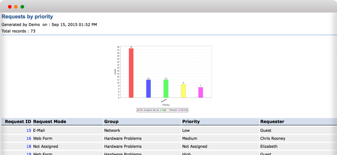 内置150多种报表,可为您提供帮助台服务活动的各种数据,包括请求、问题、变更、资产、调查等等。
