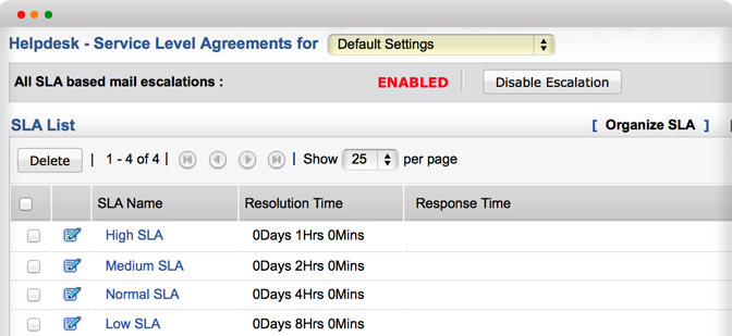根据工单的属性,例如优先级、影响度、紧急度、部门、请求人、服务目录等自动设定SLA。