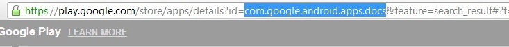 请参阅以下步骤,获取Play商店的安卓应用的包标识符: