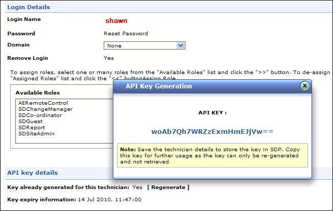 ServiceDesk Plus与集成应用之间的认证是通过API密钥进行的。每个可登录的技术员都可以生成一个唯一的密钥。