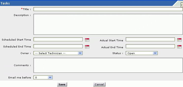 实际开始时间和结束时间由完成此项任务的技术员输入。