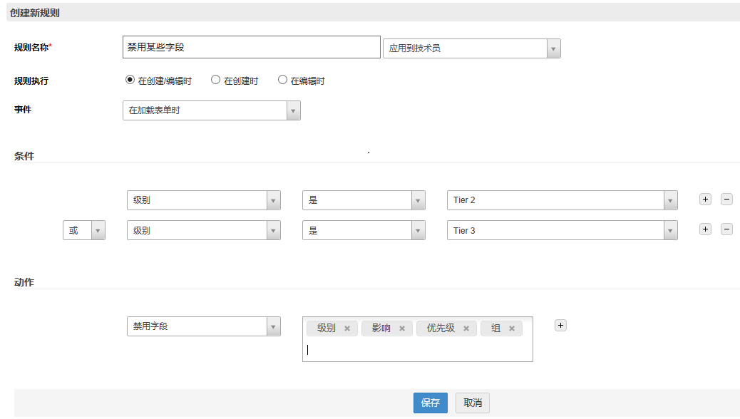iii. 规则执行: 选择规则执行的时机,可以是:创建/编辑时、创建时、或编辑时。